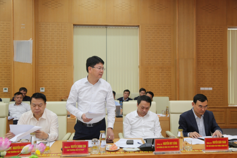 Thứ trưởng Bộ Tư pháp Nguyễn Thanh Tịnh phát biểu tại phiên làm việc.