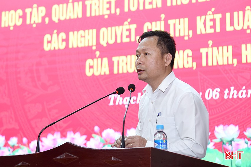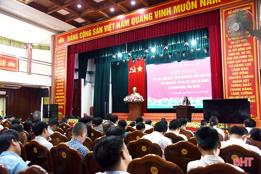 Sáng 6/5, Huyện ủy Thạch Hà tổ chức hội nghị học tập, quán triệt, tuyên truyền, triển khai thực hiện các nghị quyết, chỉ thị, kết luận, kế hoạch, chương trình của Trung ương, tỉnh, huyện. Tham dự hội nghị có hơn 200 đại biểu là cán bộ cốt cán toàn huyện.