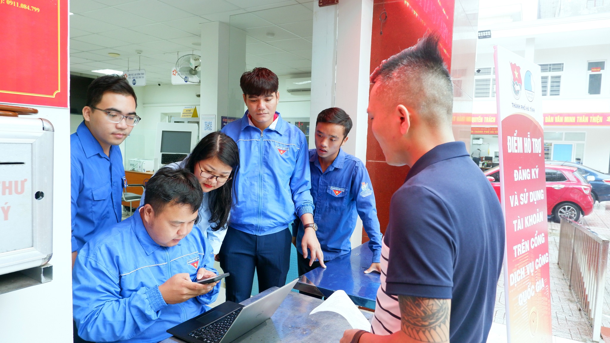Hưởng ứng ngày Chuyển đổi số quốc gia, Thành đoàn Hà Tĩnh đã tổ chức ra quân hỗ trợ người dân thực hiện các dịch vụ công trực tuyến tại Trung tâm hành chính công thành phố; Xây dựng và ra mắt biển tuyên truyền thông minh và chuyên mục số Sống xanh tại Công viên trung tâm thành phố; Ra mắt công trình số hóa di tích Đền Đông Miếu, phường Văn Yên.