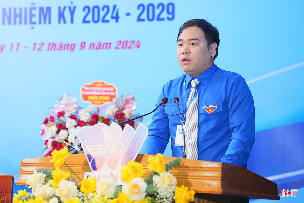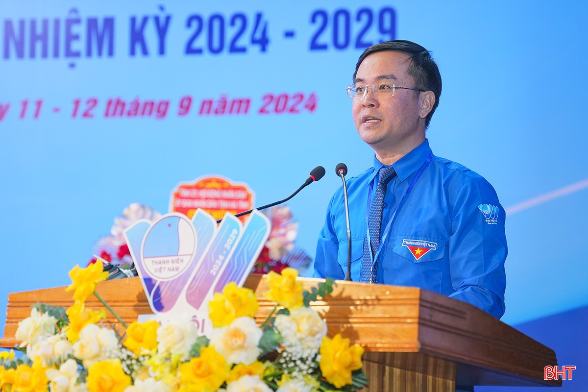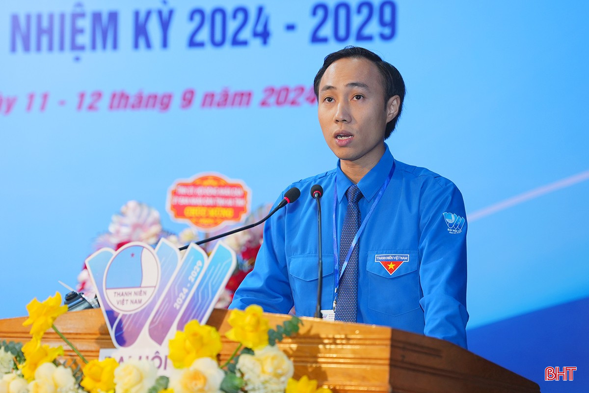 Phó Chủ tịch Hội LHTN Việt Nam tỉnh Từ Tuấn Phương trình bày mục tiêu, phương hướng, nhiệm vụ và giải pháp công tác hội và phong trào thanh niên tỉnh Hà Tĩnh, nhiệm kỳ 2024 - 2029.