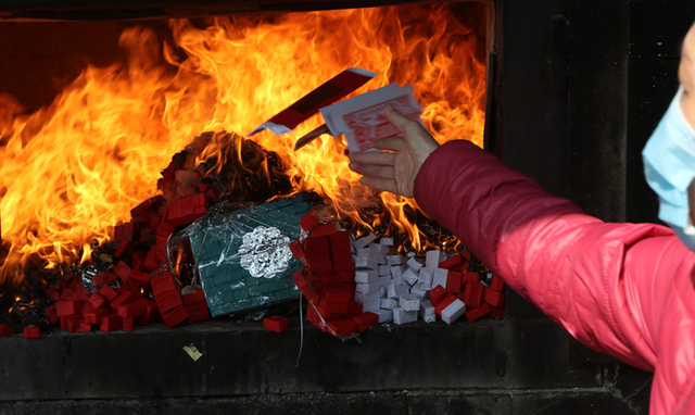 Đốt vàng mã vừa tiềm ẩn nguy cơ cháy nổ, vừa tốn kém tiền bạc và ô nhiễm môi trường. (Ảnh: Báo Tin tức)