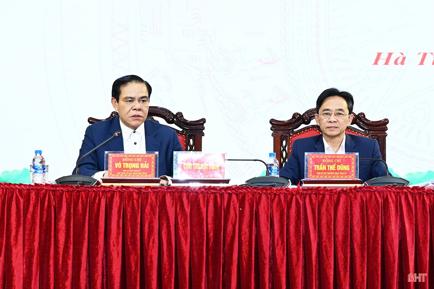 Phó Bí thư Thường trực Tỉnh ủy Trần Thế Dũng và Chủ tịch UBND tỉnh Võ Trọng Hải chủ trì hội nghị.