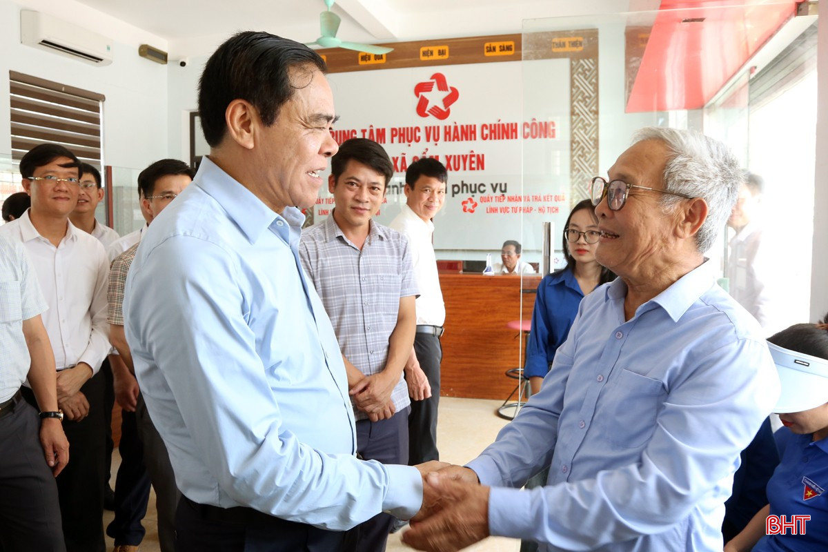 Chủ tịch UBND tỉnh Võ Trọng Hải cùng các thành viên trong đoàn công tác đã đến kiểm tra thực tế tại các trung tâm phục vụ hành chính công 2 xã Cẩm Xuyên, Can Lộc mới. Theo báo cáo, đến nay, hai địa phương cơ bản hoàn thiện các điều kiện về cơ sở vật chất, bố trí, sắp xếp nơi làm việc cho đội ngũ cán bộ, công chức. Các trang thiết bị, hệ thống kỹ thuật và nhân sự cơ bản đáp ứng nhu cầu trong quá trình vận hành thử nghiệm theo kế hoạch của tỉnh. Công tác chuẩn bị các nội dung cho kỳ họp thứ nhất HĐND cấp xã mới cơ bản hoàn tất.