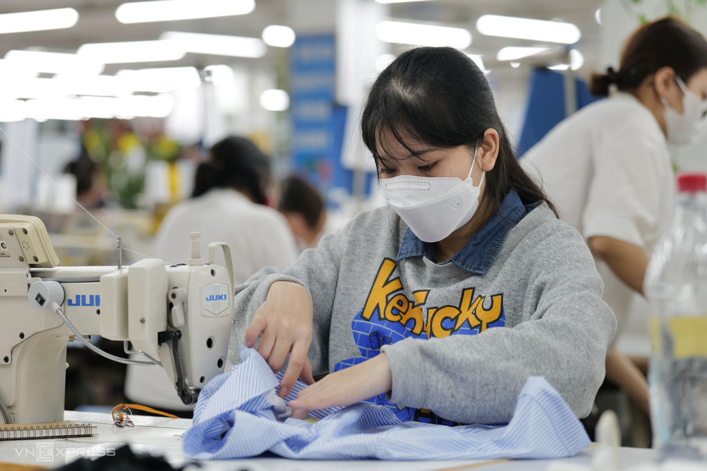 Giờ vào ca của công nhân May 10, Hà Nội, tháng 2/2024. Ảnh: Ngọc Thành