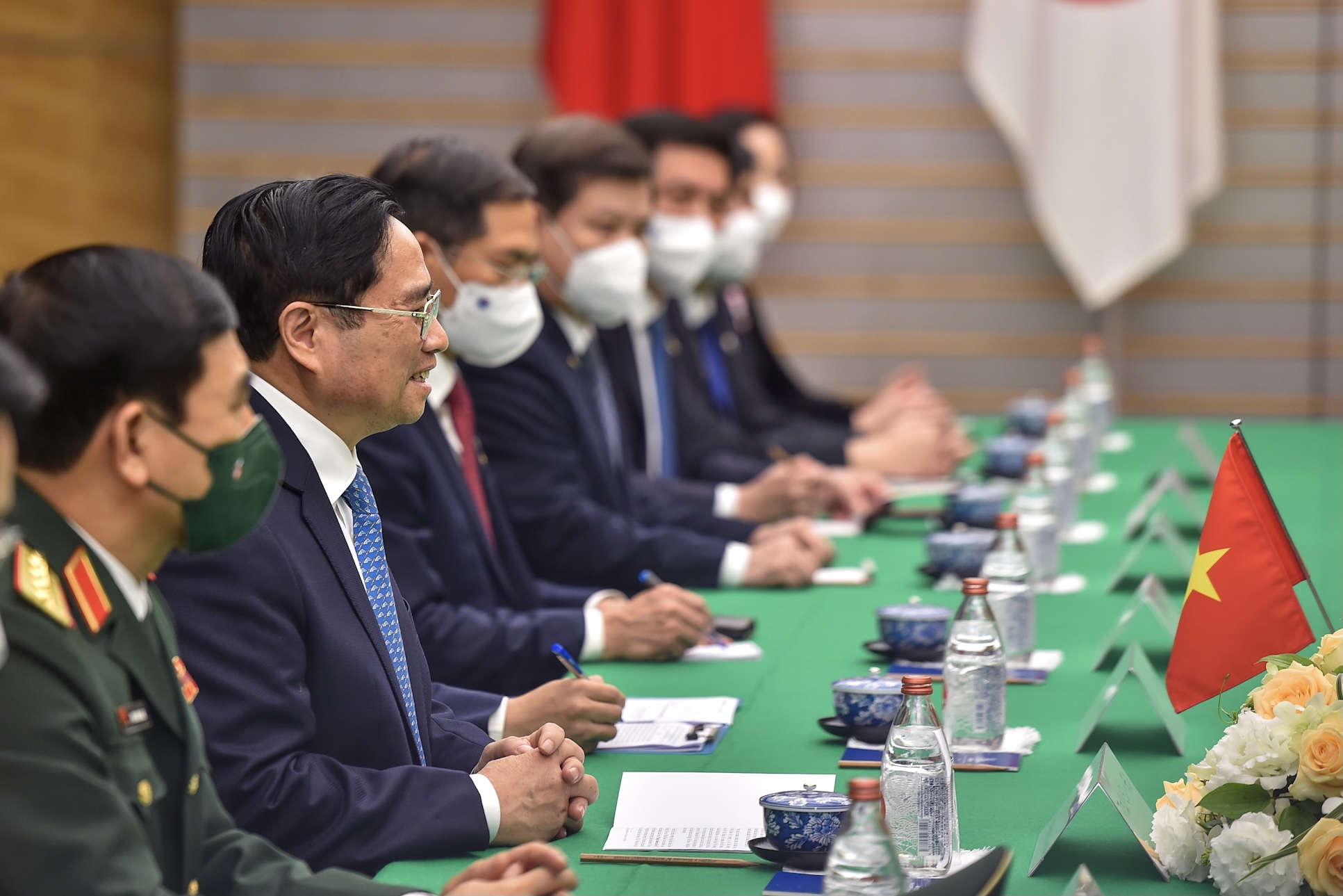 Thủ tướng Chính phủ Phạm Minh Chính nhấn mạnh, trong triển khai đường lối đối ngoại Đại hội Đảng XIII, Việt Nam coi Nhật Bản là đối tác chiến lược tin cậy, quan trọng và lâu dài. Trên cơ sở khẳng định Chính phủ Việt Nam sẽ tiếp tục tạo môi trường đầu tư thông thoáng, minh bạch, tích cực hỗ trợ doanh nghiệp, giữ vững cam kết đối với các nhà đầu tư, Thủ tướng Chính phủ nêu một số đề xuất cụ thể về thúc đẩy hợp tác trên các lĩnh vực, trong đó có tăng cường kết nối kinh tế, phát triển nguồn nhân lực, khoa học công nghệ, chuỗi cung ứng, hợp tác đầu tư, thương mại, công nghiệp phụ trợ, chuyển đổi số, phát triển xanh, đổi mới sáng tạo, đô thị thông minh, nông nghiệp công nghệ cao, xây dựng cơ sở hạ tầng, biến đổi khí hậu, tiếp nhận thực tập sinh và hỗ trợ nâng cấp các trường đại học Việt Nam…