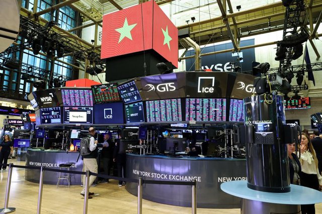 Sàn giao dịch chứng khoán New York chào đón Thủ tướng Phạm Minh Chính và đoàn đại biểu Việt Nam - Ảnh: VGP/Nhật Bắc