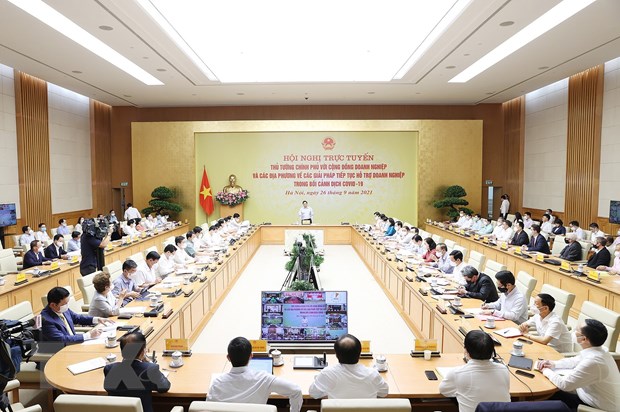 Sáng 26/9, Thủ tướng Chính phủ Phạm Minh Chính đã chủ trì hội nghị trực tuyến với cộng đồng doanh nghiệp và các địa phương về các giải pháp tiếp tục hỗ trợ doanh nghiệp trong bối cảnh dịch COVID-19.