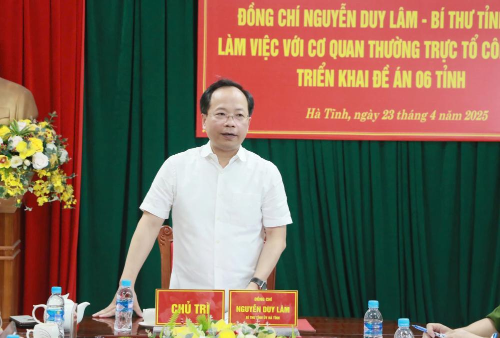 Phát biểu chỉ đạo tại hội nghị, đồng chí Nguyễn Duy Lâm - Bí thư Tỉnh uỷ ghi nhận và đánh giá cao những kết quả đạt được trong thực hiện Đề án 06 trên địa bàn toàn tỉnh. Đồng chí Bí thư Tinh ủy đề nghị lãnh đạo các đơn vị từ tỉnh đến cơ sở tiếp tục tăng cường công tác tuyên truyền, phổ biến, quán triệt việc thực hiện các nội dung, nhiệm vụ của Đề án 06 để nâng cao nhận thức của người dân và doanh nghiệp về sự cần thiết, tính cấp thiết và lợi ích mang lại từ kết quả thực hiện Đề án 06. Công an tỉnh tiếp tục tham mưu với Tỉnh ủy, UBND tỉnh trong việc đầu tư nâng cấp trang thiết bị, bồi dưỡng nâng cao trình độ chuyên môn cho cán bộ, công chức, viên chức thực hiện giải quyết thủ tục hành chính. Chỉ đạo Công an cấp xã, phường, thị trấn, đồn tiếp tục triển khai việc cấp căn cước công dân gắn chíp cho những người đủ điều kiện.