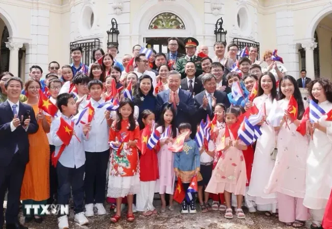 Ân cần thăm hỏi tình hình học tập, làm việc, đời sống sinh hoạt của học sinh, sinh viên, cán bộ người Việt Nam tại Cuba, Tổng Bí thư, Chủ tịch nước Tô Lâm bày tỏ xúc động, vui mừng được đến thăm các cơ quan đại diện Việt Nam, gặp gỡ đại điện cộng đồng và lưu học sinh Việt Nam tại Cuba nhân chuyến thăm cấp Nhà nước tới Cuba.