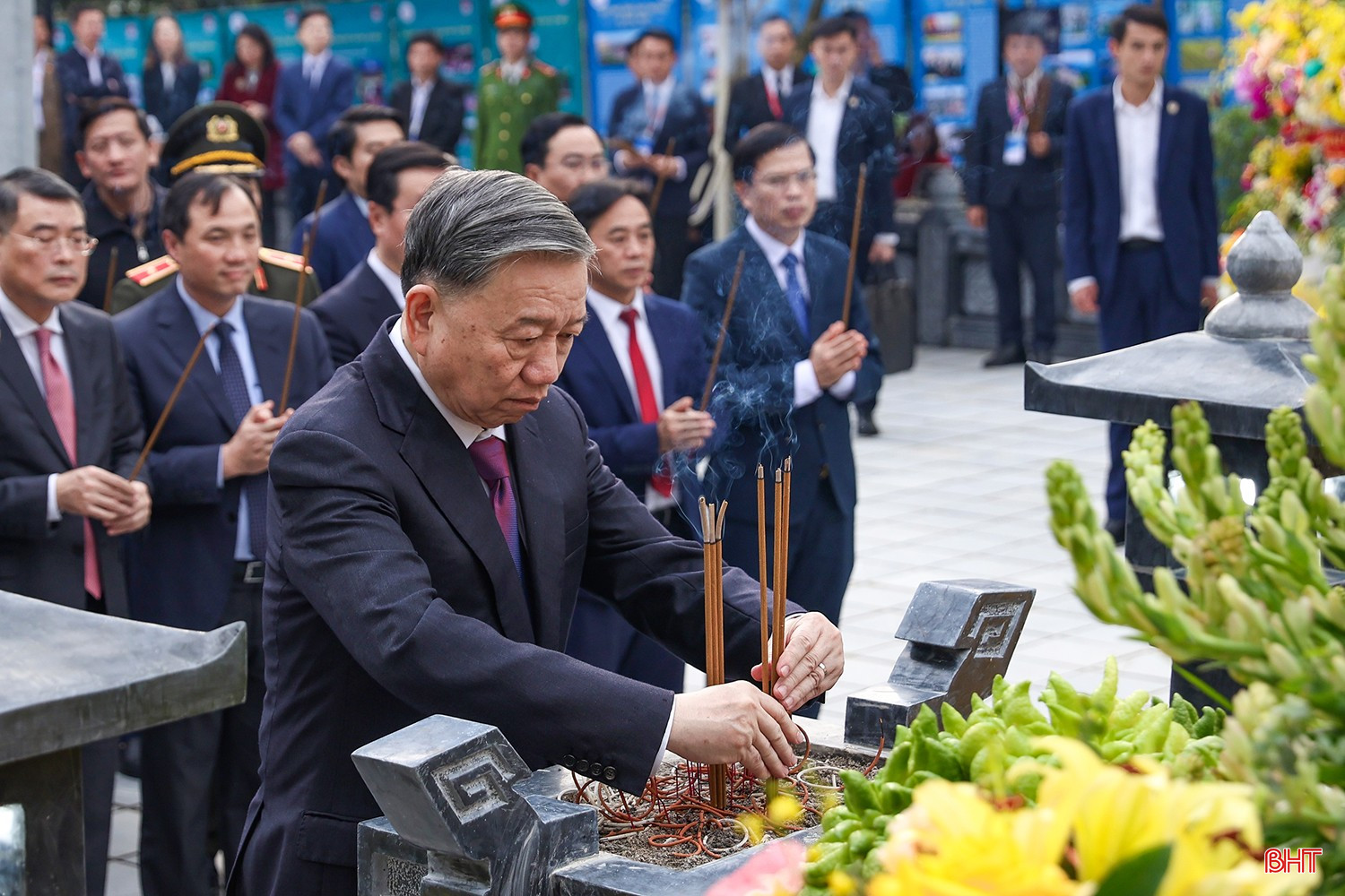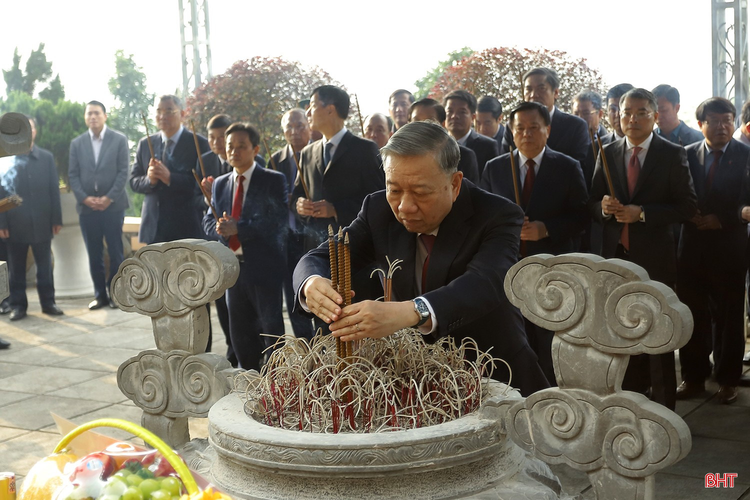 Tổng Bí thư Tô Lâm dâng hương trước khu mộ Tổng Bí thư Hà Huy Tập.