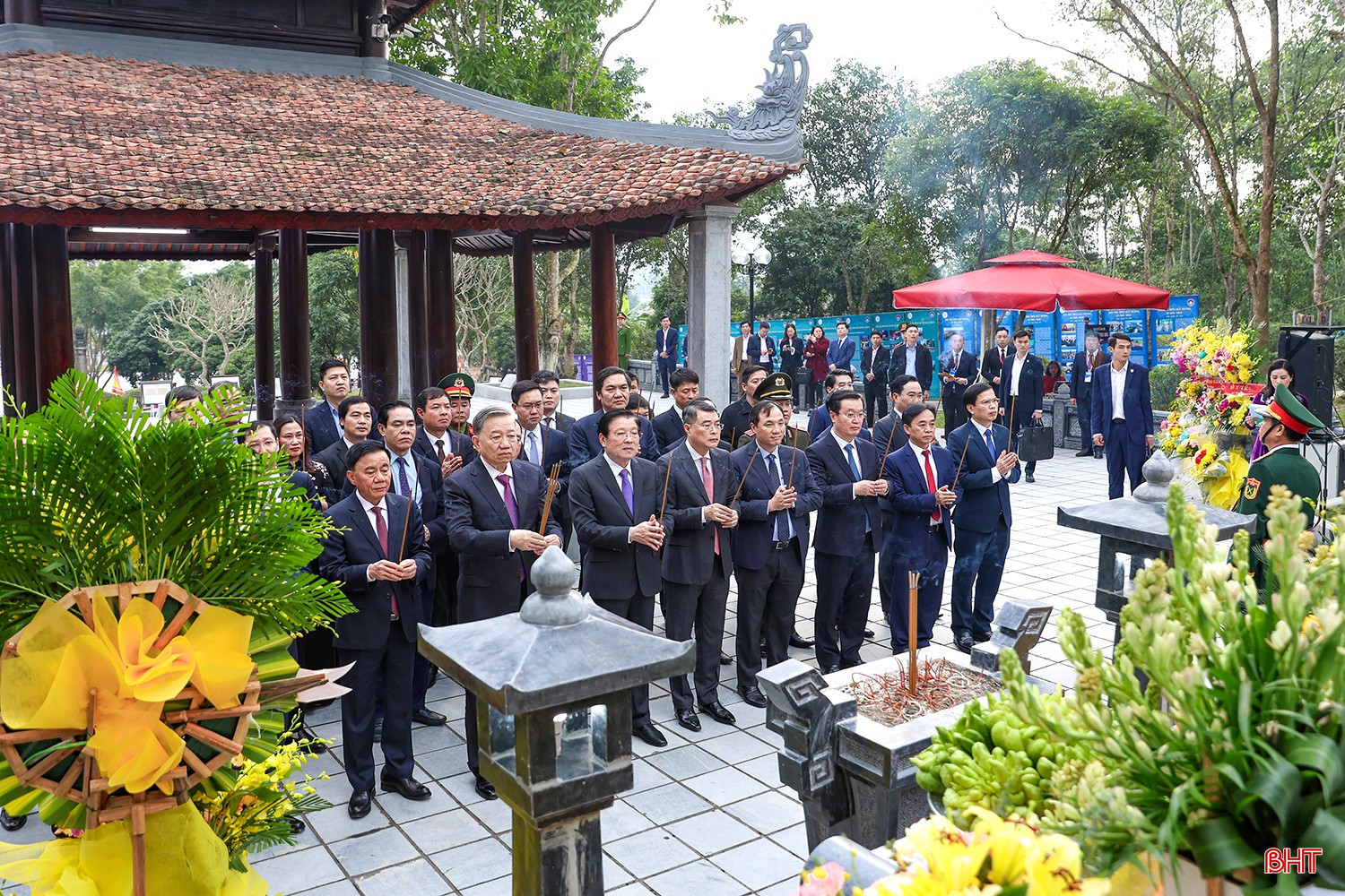 Tổng Bí thư Tô Lâm và đoàn công tác dâng hoa tại khu mộ Tổng Bí thư Hà Huy Tập (xã Cẩm Hưng, huyện Cẩm Xuyên).