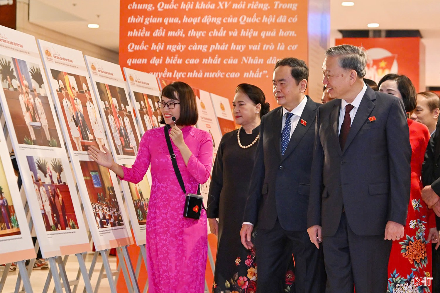 Tổng Bí thư Tô Lâm và Chủ tịch Quốc hội Trần Thanh Mẫn cùng lãnh đạo, nguyên lãnh đạo Đảng, Nhà nước, Mặt trận Tổ quốc Việt Nam, các đại biểu tham quan Triển lãm ảnh "Quốc hội Việt Nam - 80 năm kế thừa và phát triển".