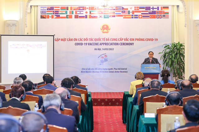 Chiều ngày 14/3, tại Hà Nội, Thủ tướng Chính phủ Phạm Minh Chính, Trưởng Ban Chỉ đạo quốc gia phòng chống dịch COVID-19 dự chương trình gặp mặt cảm ơn các đối tác quốc tế đã hỗ trợ vaccine phòng COVID-19 cho Việt Nam.