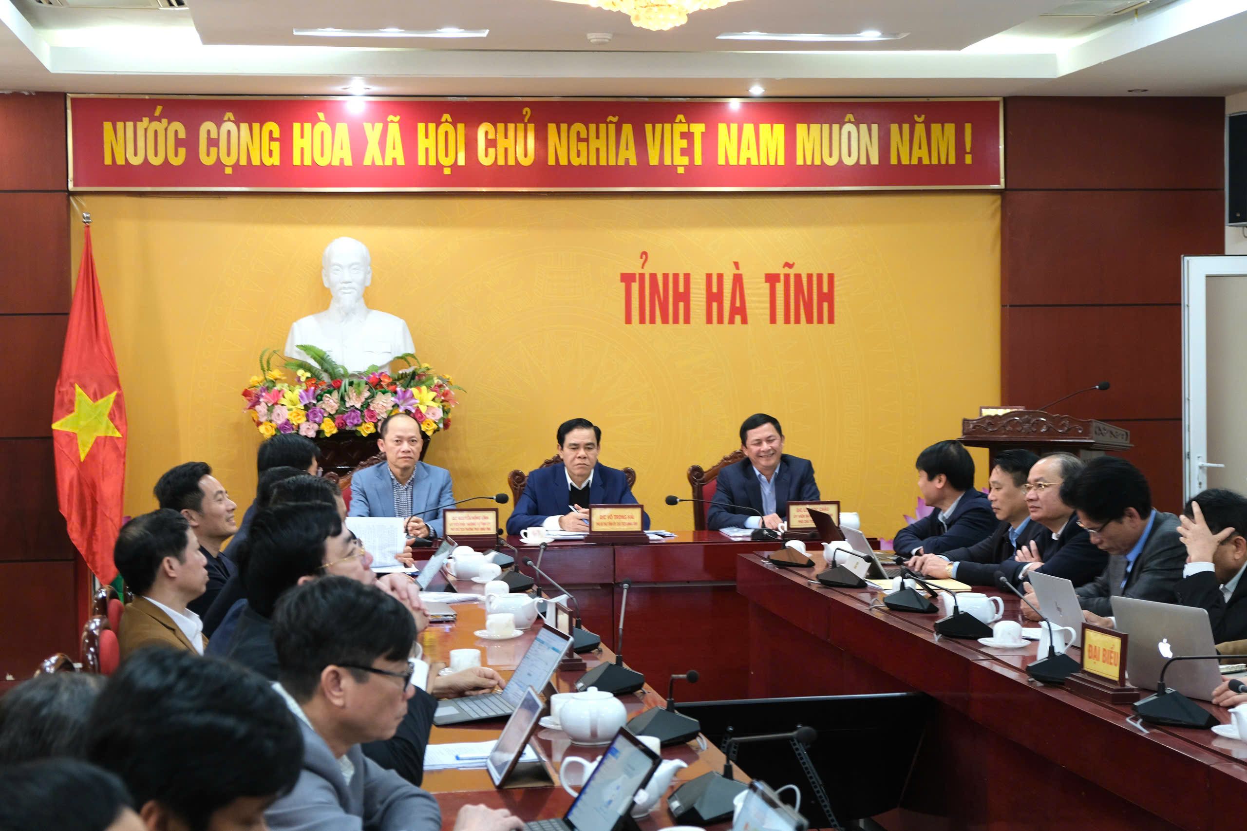 Các lãnh đạo chủ trì tại điểm cầu tỉnh Hà Tĩnh.