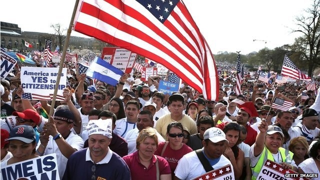 Thanh niên biểu tình ở thủ đô Washington D.C. đòi cải cách luật lệ về nhập cư vào Mỹ. Ảnh Getty
