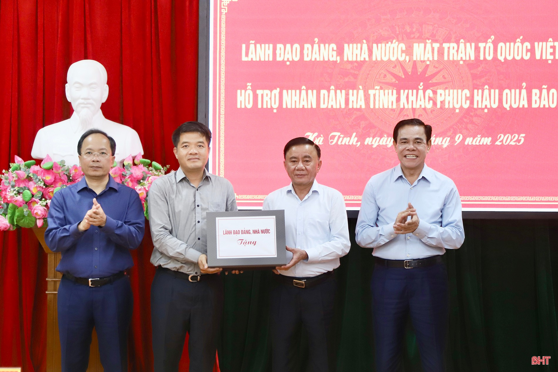 Ủy ban Trung ương MTTQ Việt Nam cũng trao 500 triệu đồng của Ban vận động cứu trợ Trung ương hỗ trợ tỉnh Hà Tĩnh; các đơn vị tài trợ trao hỗ trợ tỉnh 7,7 tỷ đồng khắc phục hậu quả bão số 10.