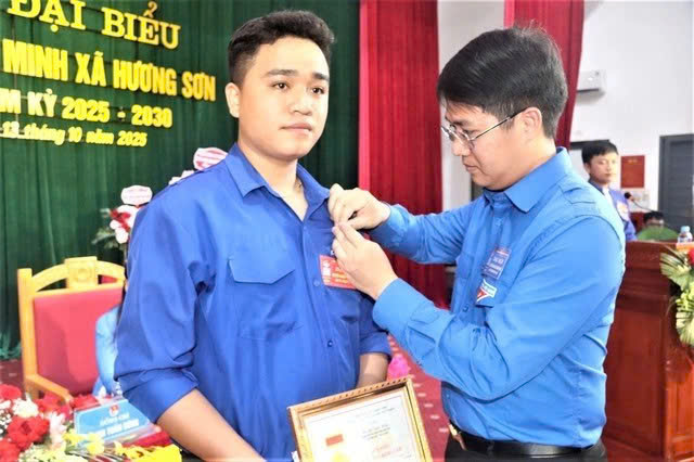 Huy hiệu Tuổi trẻ dũng cảm được trao cho anh Hiệu