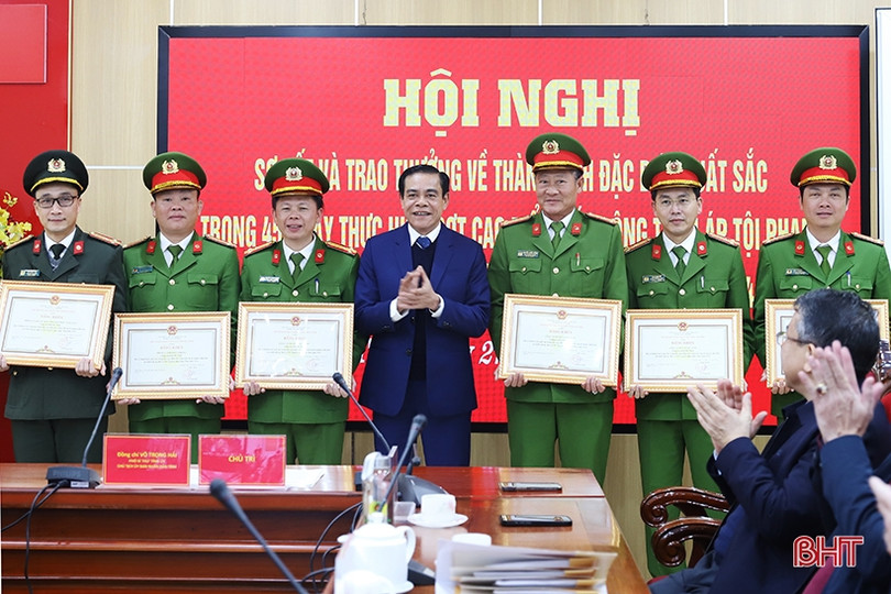 Chủ tịch UBND tỉnh Võ Trọng Hải trao bằng khen cho các tập thể có thành tích xuất sắc trong 45 ngày thực hiện đợt cao điểm tấn công trấn áp tội phạm, đảm bảo ANTT, bảo vệ tết Nguyên đán Giáp Thìn 2024.