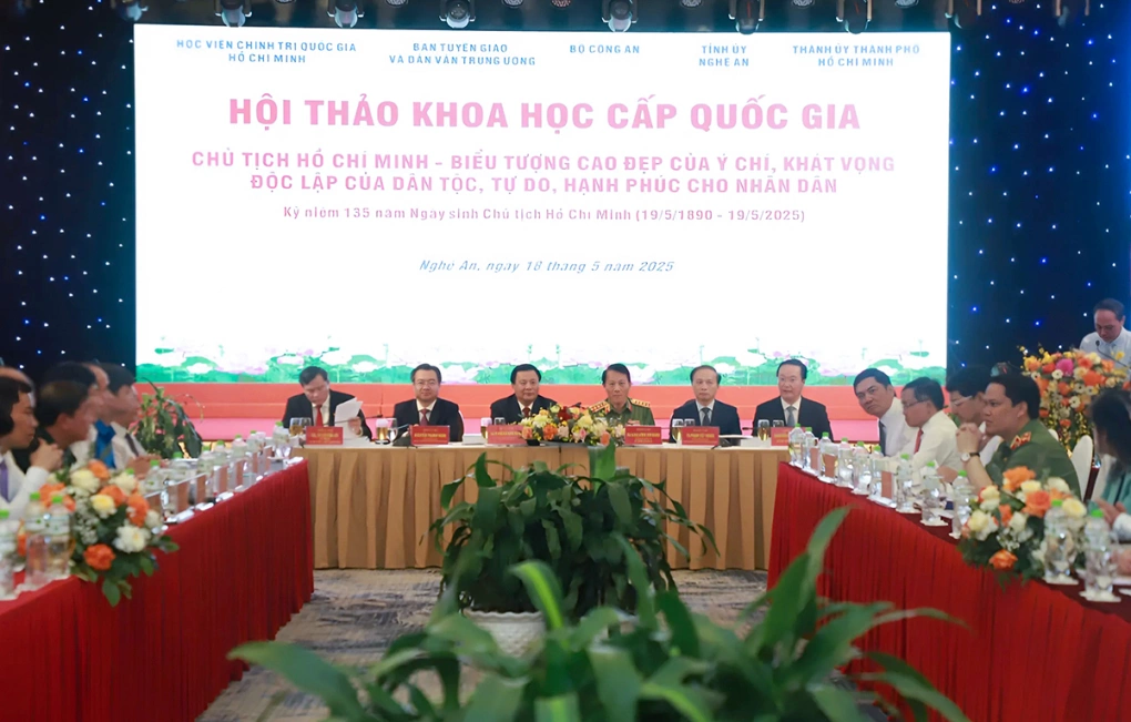 Chiều 18/5, Học viện Chính trị quốc gia Hồ Chí Minh, Ban Tuyên giáo và Dân vận Trung ương, Bộ Công an, Thành ủy TP HCM và Tỉnh ủy Nghệ An phối hợp tổ chức hội thảo khoa học cấp quốc gia "Chủ tịch Hồ Chí Minh - biểu tượng cao đẹp của ý chí, khát vọng độc lập của dân tộc, tự do, hạnh phúc cho nhân dân".
