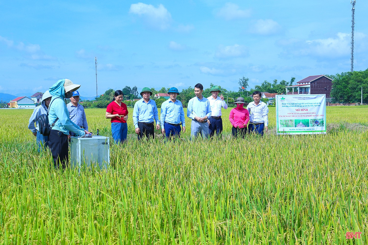 Mô hình sản xuất lúa chất lượng cao tại HTX Thương mại dịch vụ nông nghiệp Hạ Vàng (xã Can Lộc) đạt OCOP 3 sao.