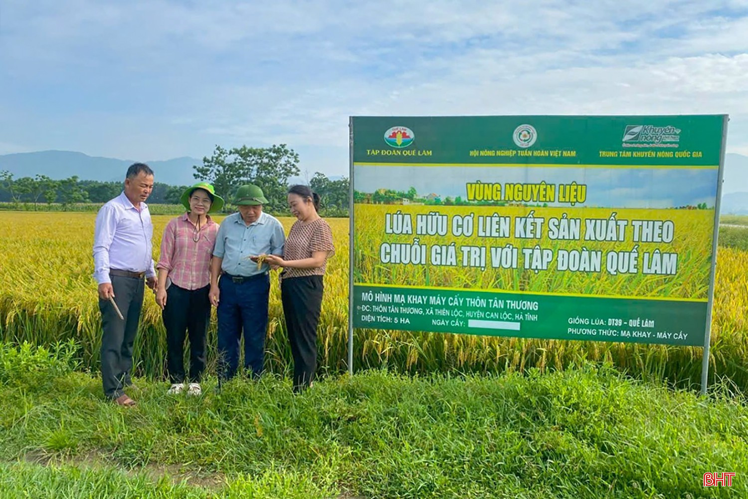 Hiện nay, quá trình chuyển đổi, tích tụ ruộng đất đang bước sang giai đoạn mới, không chỉ mở rộng quy mô mà còn gắn liền với đổi mới phương thức sản xuất, ứng dụng khoa học kỹ thuật, hướng tới nền nông nghiệp hàng hóa hiện đại. Nhiều mô hình liên kết theo chuỗi giá trị đã hình thành: sản xuất lúa hữu cơ, theo hướng hữu cơ tại xã Kỳ Anh; lúa chất lượng cao tại HTX Thương mại dịch vụ nông nghiệp Hạ Vàng (xã Can Lộc) đạt OCOP 3 sao; sản xuất lúa tập trung tại HTX Nông nghiệp Đồng Tiến (phường Trần Phú)…