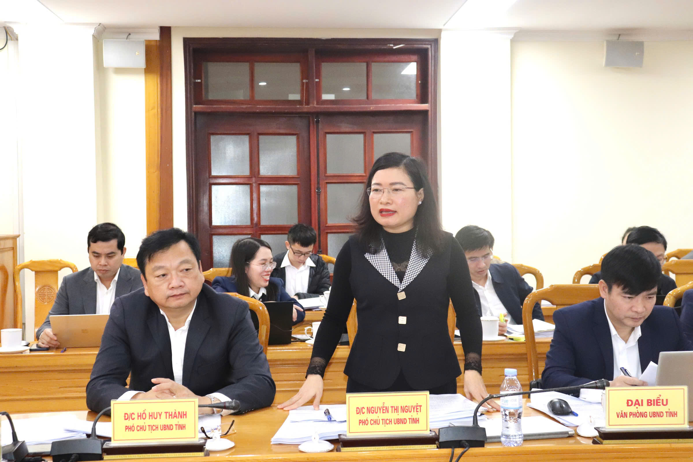 Phó Chủ tịch UBND tỉnh Nguyễn Thị Nguyệt trao đổi tại cuộc họp