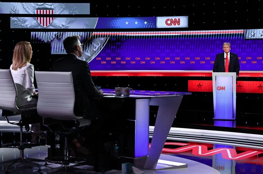 Cựu Tổng thống Trump trong phiên tranh luận với ông Biden ở Atlanta. Ảnh: New York Times