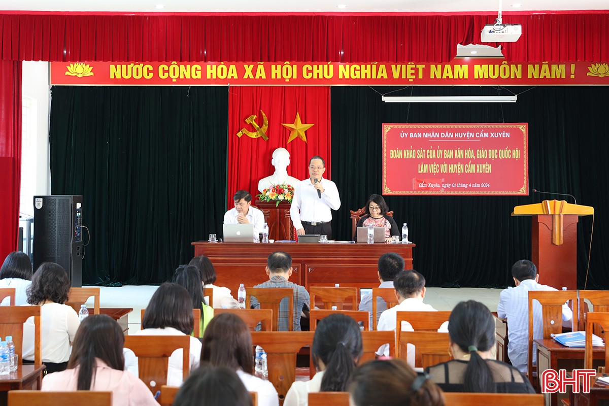 Đoàn công tác Ủy ban Văn hoá, Giáo dục của Quốc hội làm việc với huyện Cẩm Xuyên.