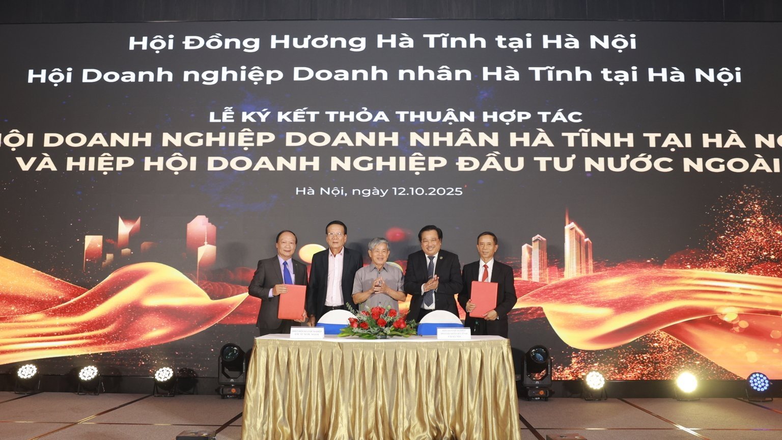 Hiệp hội Doanh nghiệp đầu tư nước ngoài và Hội Doanh nhân Hà Tĩnh tại Hà Nội ký Biên bản ghi nhớ hợp tác (MOU). Ảnh: BTC.Ngày 12/10, Hiệp hội Doanh nghiệp đầu tư nướ