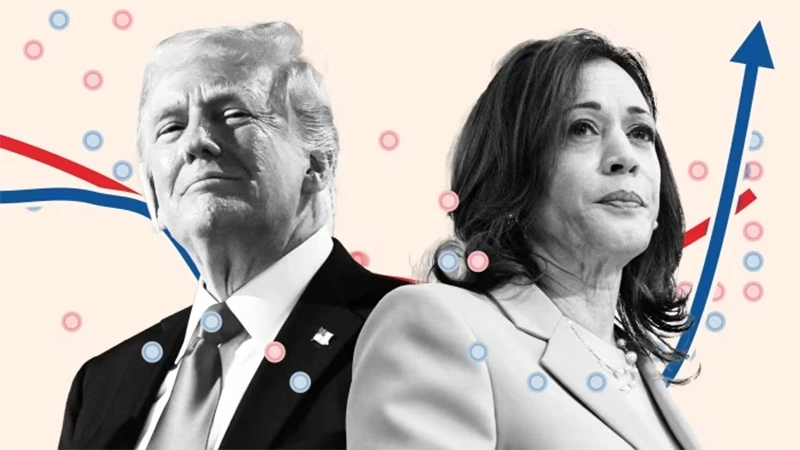 Cuộc đua bầu cử Mỹ tại 7 bang chiến địa giữa cựu Tổng thống Donald Trump và Phó Tổng thống Kamala Harris đang ở thế quyết liệt. Ảnh: FT