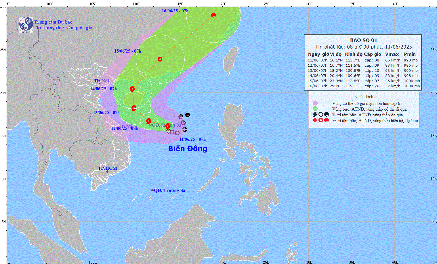 Sáng nay (11/6), áp thấp nhiệt đới trên khu vực phía Đông quần đảo Hoàng Sa đã mạnh lên thành bão, cơn bão số 1 năm 2025, có tên quốc tế là WUTIP.