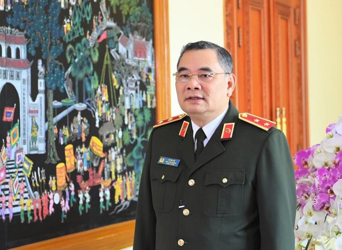 Phóng viên Đài TNVN phỏng vấn Trung tướng Tô Ân Xô, Người phát ngôn Bộ Công an về những kết quả của đoàn và vai trò, trách nhiệm và quan điểm của Bộ Công an trong giải quyết các vấn đề an ninh trật tự trong khu vực và quốc tế.