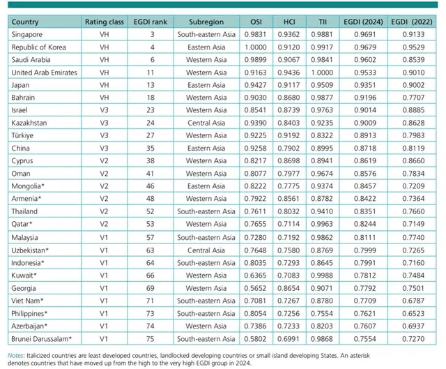 Ngoài ra, Liên hợp quốc đánh giá Việt Nam cùng với 3 quốc gia là Indonesia, Philippines, Brunei ở khu vực Đông Nam Á có giá trị EGDI chuyển từ nhóm Cao lên nhóm Rất cao. Trong đó, Liên hợp quốc đánh giá cao Việt Nam về những nỗ lực trong việc cải tiến chất lượng dịch vụ công trực tuyến.