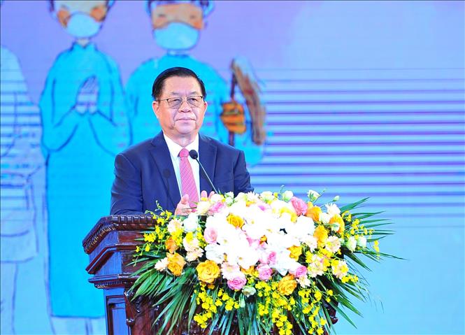Bí thư Trung ương Đảng, Trưởng ban Tuyên giáo Trung ương Nguyễn Trọng Nghĩa phát biểu tại buổi lễ. Ảnh: Minh Đức/TTXVN