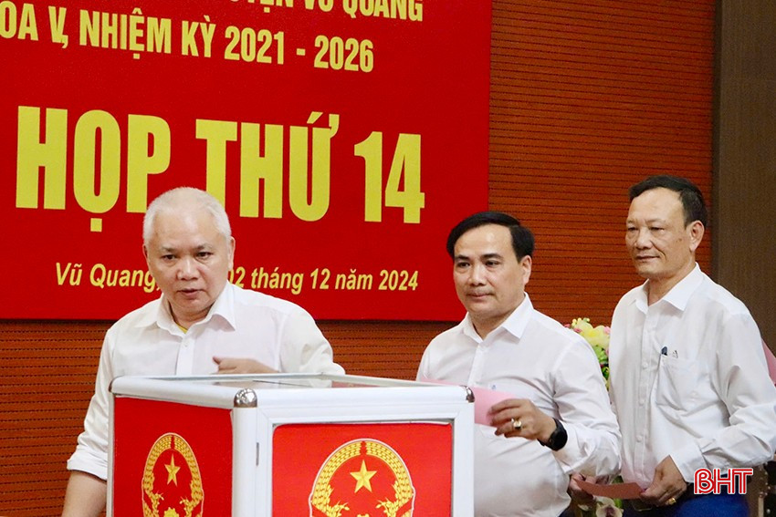 Với tinh thần nghiêm túc, dân chủ, đoàn kết, thẳng thắn, đại biểu HĐND huyện Vũ Quang đã bầu ông Lê Thanh Nghị - Phó Bí thư Thường trực Huyện ủy giữ chức vụ Chủ tịch HĐND huyện Vũ Quang khóa V, nhiệm kỳ 2021 - 2026, với số phiếu tín nhiệm đạt 100%.
