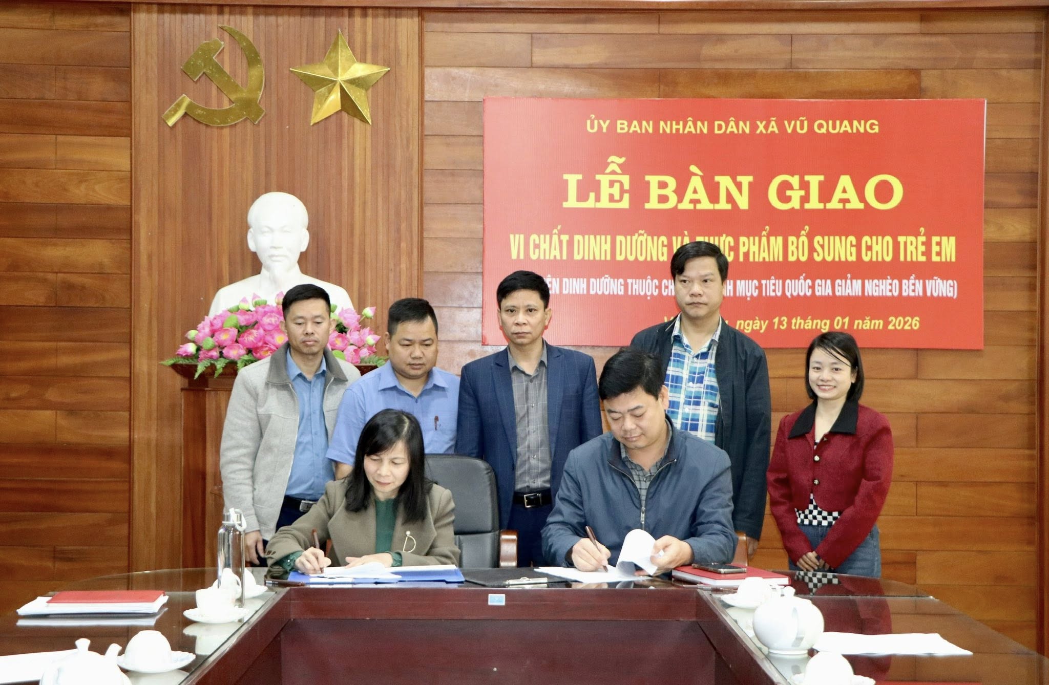 Sáng 13/01/2026, UBND xã Vũ Quang tổ chức lễ bàn giao vi chất dinh dưỡng và thực phẩm bổ sung cho trẻ em thuộc hộ nghèo, cận nghèo và mới thoát nghèo trên địa bàn. Hoạt động nhằm góp phần cải thiện tình trạng dinh dưỡng, nâng cao sức khỏe trẻ em, hướng tới thực hiện hiệu quả mục tiêu giảm nghèo bền vững.