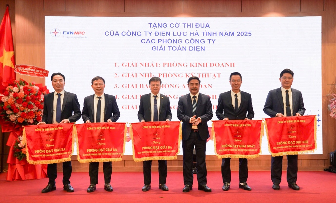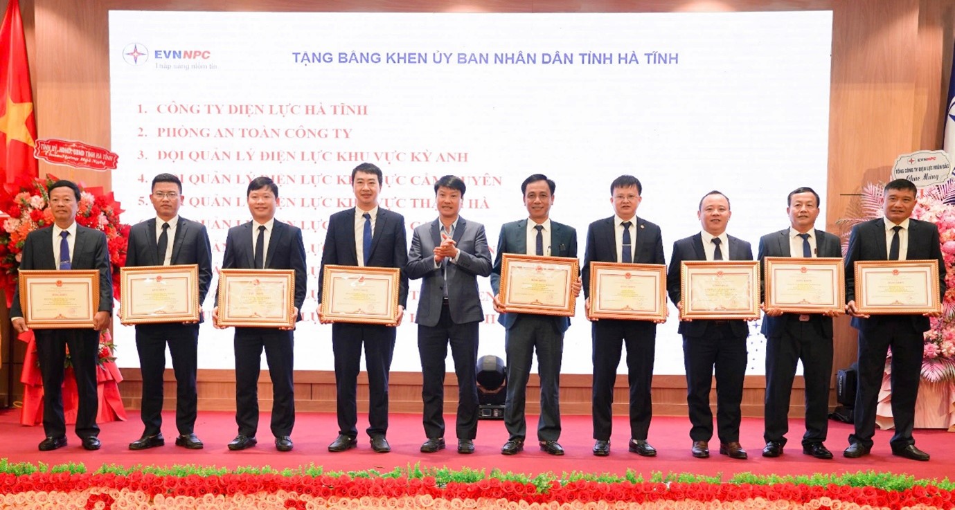 Tại hội nghị, CTĐL Hà Tĩnh và nhiều tập thể được Ủy ban nhân dân tỉnh Hà Tĩnh tặng Bằng khen. Đồng thời, Công ty trao Cờ thi đua cho các tập thể đạt thành tích xuất sắc trong phong trào thi đua sản xuất kinh doanh năm 2025; tặng Giấy khen biểu dương các tập thể tiêu biểu trong công tác khắc phục nhanh thiệt hại do bão số 5 và số 10, qua đó lan tỏa tinh thần trách nhiệm, đoàn kết và cống hiến của người thợ điện Hà Tĩnh.