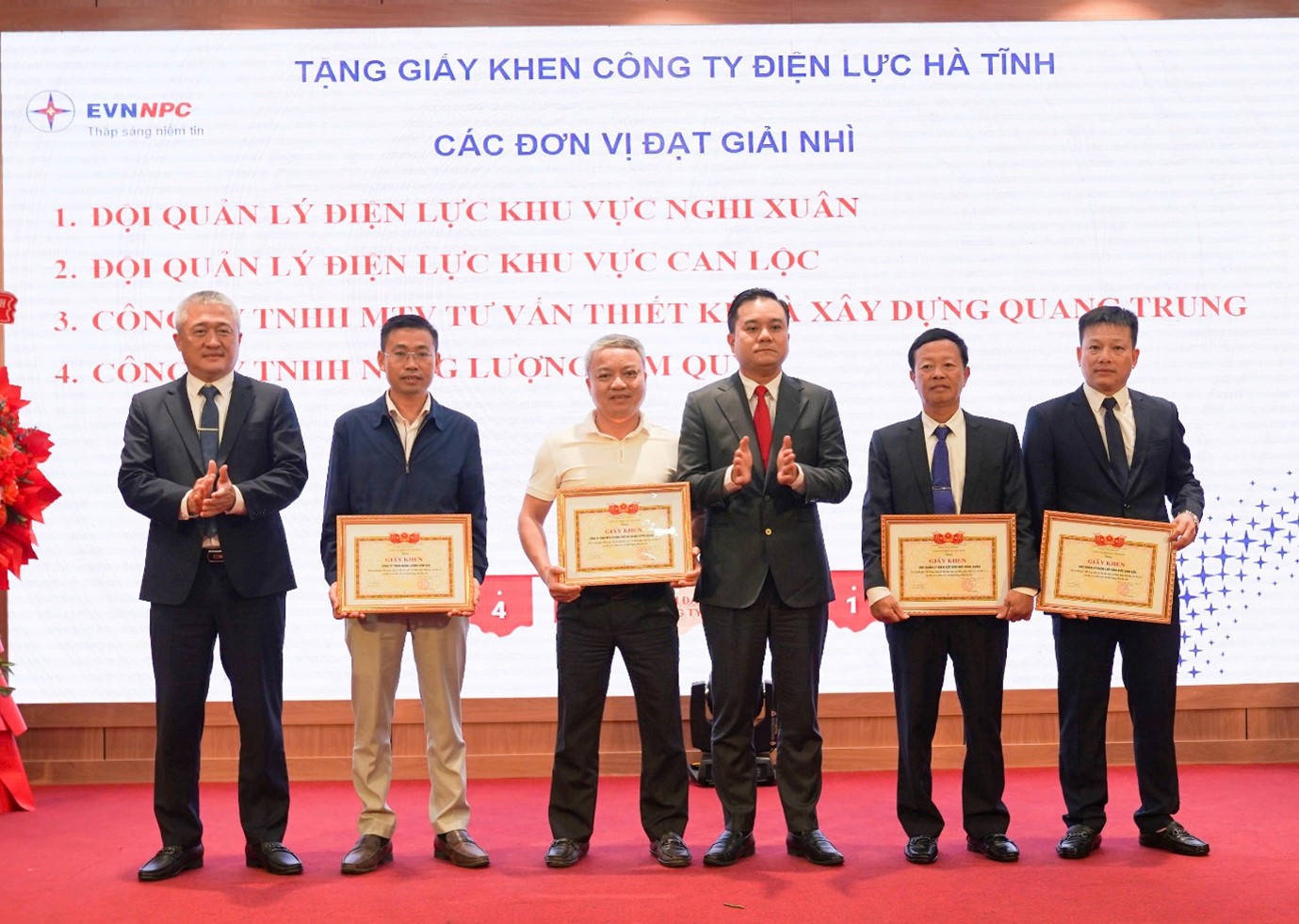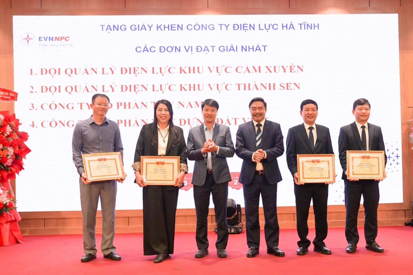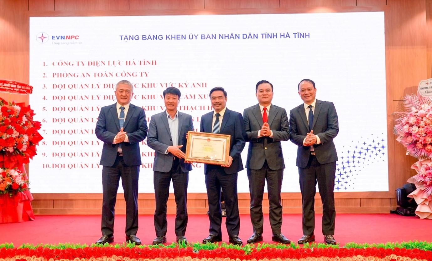 Với những kết quả và đóng góp nổi bật trong năm 2025, CTĐL Hà Tĩnh vinh dự được các cấp ghi nhận bằng nhiều phần thưởng. Đảng ủy UBND tỉnh Hà Tĩnh tặng Giấy khen hoàn thành xuất sắc nhiệm vụ; UBND tỉnh tặng Bằng khen trong công tác khắc phục hậu quả bão số 10; EVNNPC trao Cờ thi đua Giải Ba hoàn thành toàn diện nhiệm vụ sản xuất kinh doanh và Khối thi đua các đơn vị kinh tế Trung ương đề xuất UBND tỉnh tặng Cờ thi đua toàn diện.