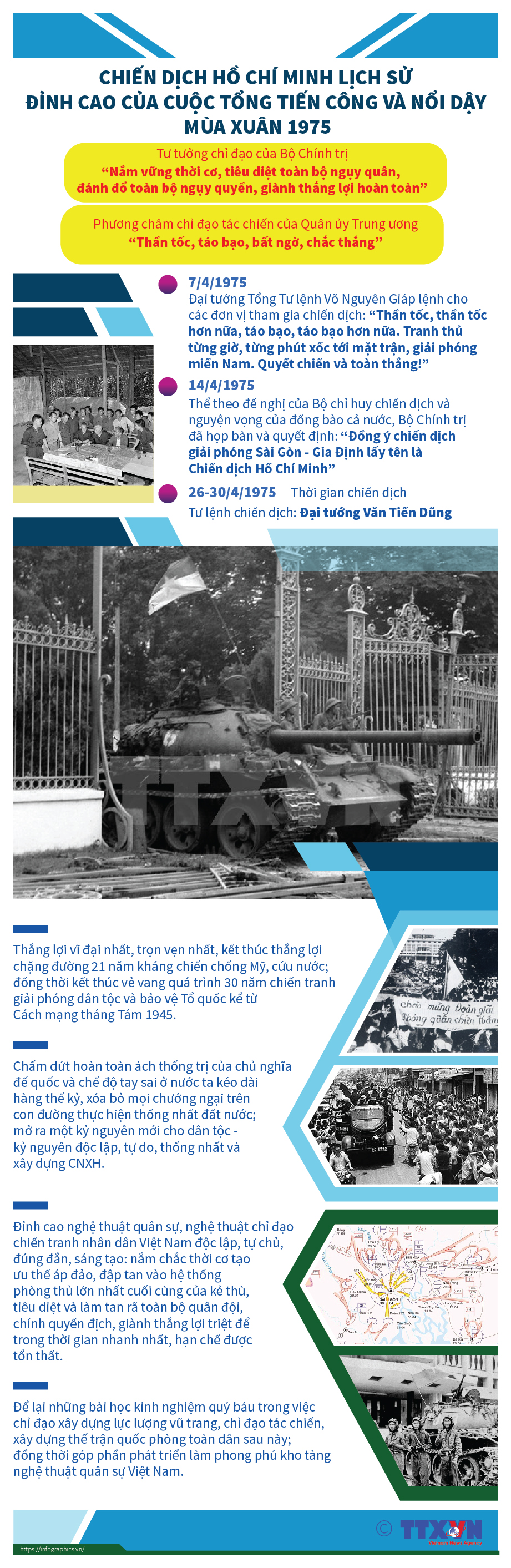 Cách đây 46 năm, cuộc tổng tiến công và nổi dậy mùa Xuân năm 1975 mà đỉnh cao là Chiến dịch Hồ Chí Minh đã giành thắng lợi, miền Nam hoàn toàn được giải phóng, non sông thu về một mối. Ngày 30/4/1975 đã đi vào lịch sử như một mốc son chói lọi; đất nước ta bước vào một kỷ nguyên mới, kỷ nguyên độc lập. Chiến thắng đó sẽ mãi là động lực thúc đẩy toàn Đảng, toàn dân ta vượt qua mọi trở ngại, tiếp tục đưa dân tộc Việt Nam đi đến những thắng lợi huy hoàng.
