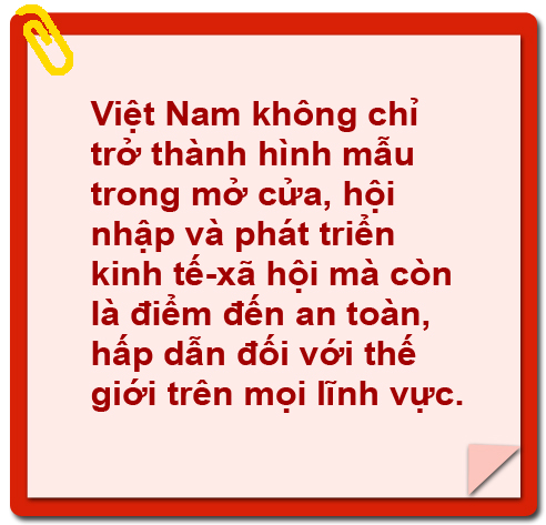 Việt Nam không chỉ trở thành hình mẫu trong mở cửa, hội nhập và phát triển kinh tế - xã hội mà còn là điểm đến an toàn, hấp dẫn đối với thế giới trên mọi lĩnh vực. Ngay cả trong bối cảnh đại dịch COVID-19, Việt Nam vẫn được xem là “đất lành” cho dòng vốn FDI chất lượng cao. Tính đến 20/03/2021, tổng vốn đầu tư nước ngoài đăng ký vào nước ta tăng mạnh, tăng 18,5% so với cùng kỳ năm trước, điển hình như Hoa Kỳ tăng 205,5%; Nhật Bản tăng 147,7%; Hàn Quốc tăng 67,1%.