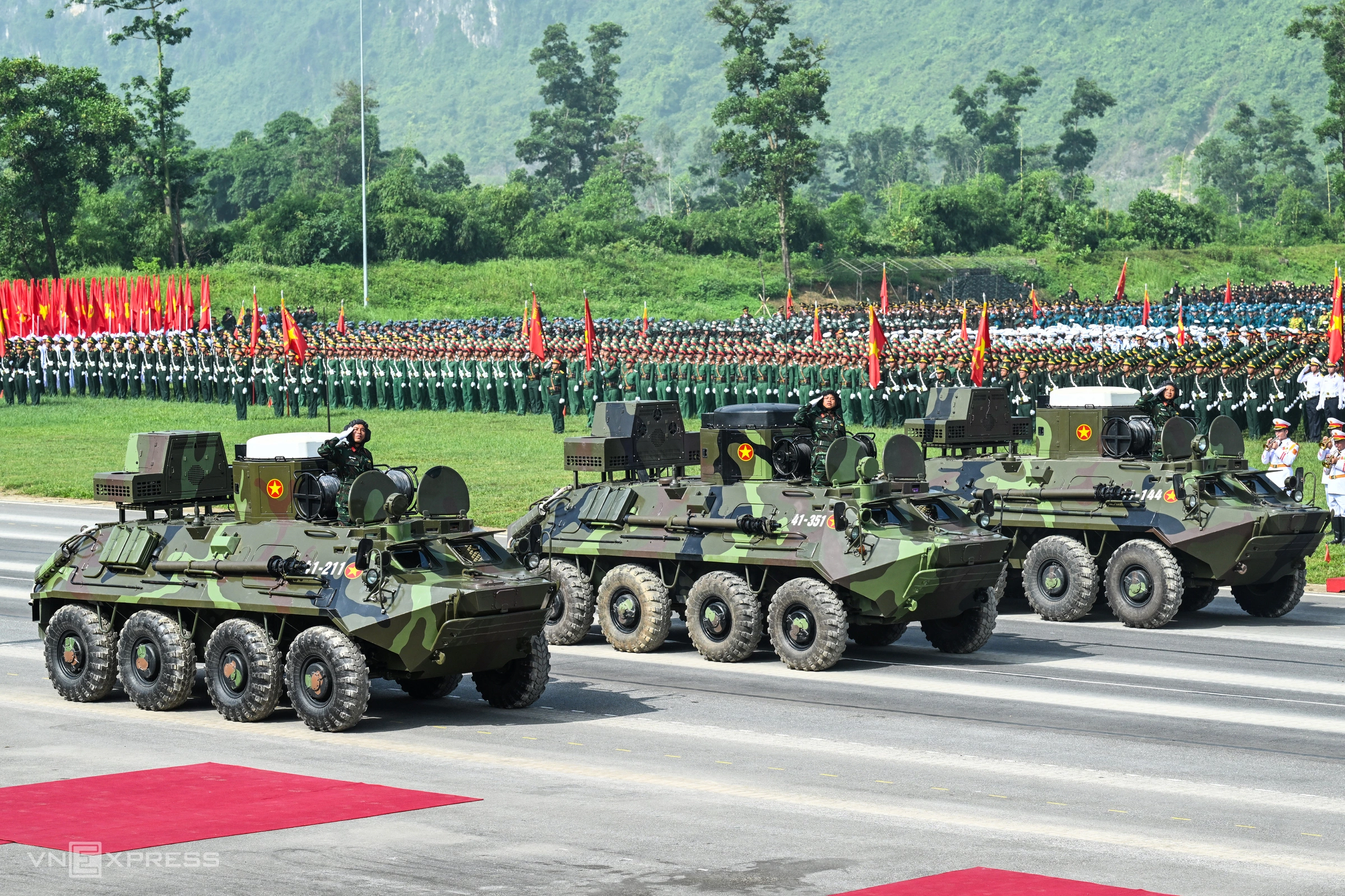 Tham gia tổng duyệt còn có nhiều loại xe thiết giáp do Việt Nam tự sản xuất, đang được nghiệm thu và đưa vào huấn luyện tại các đơn vị.