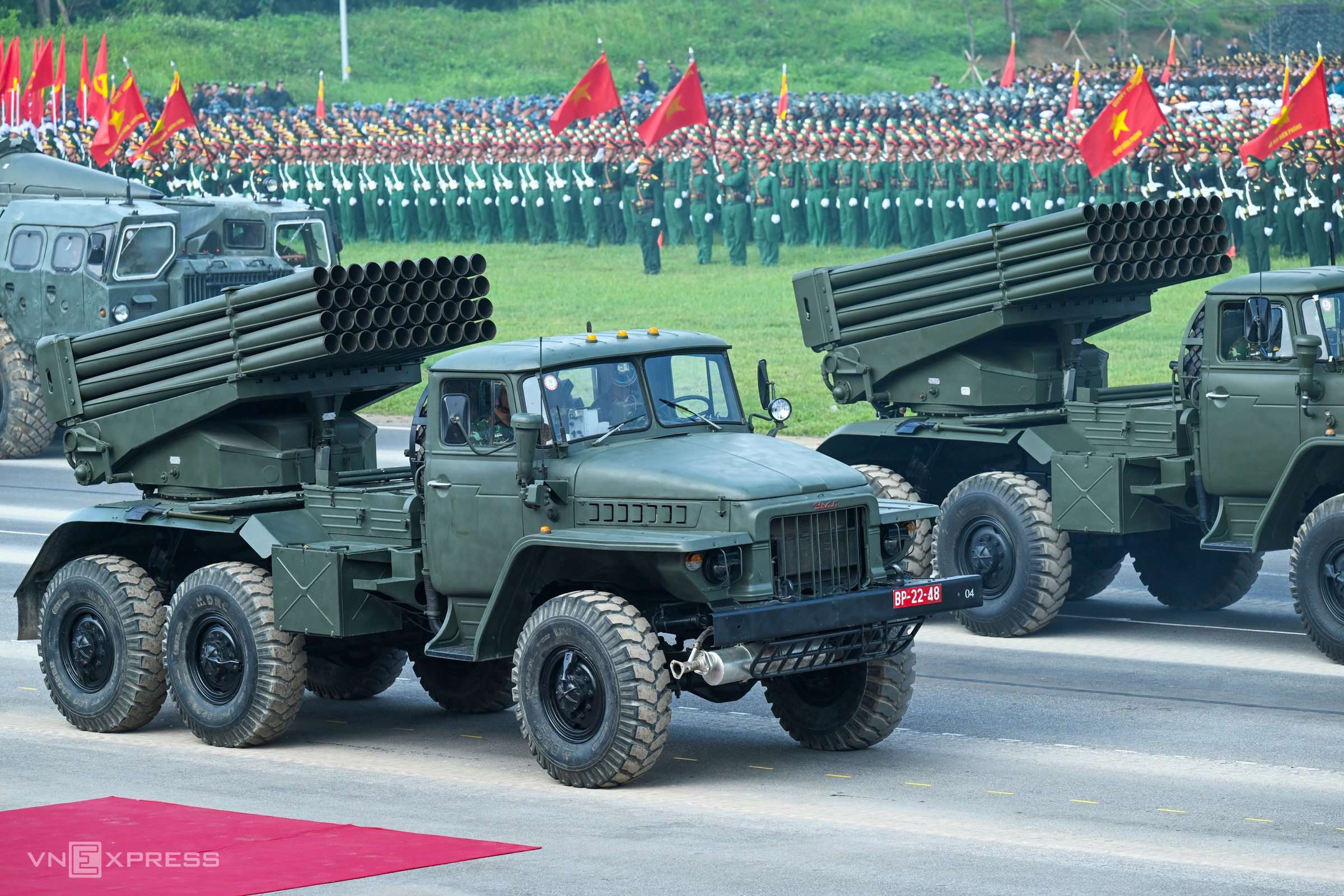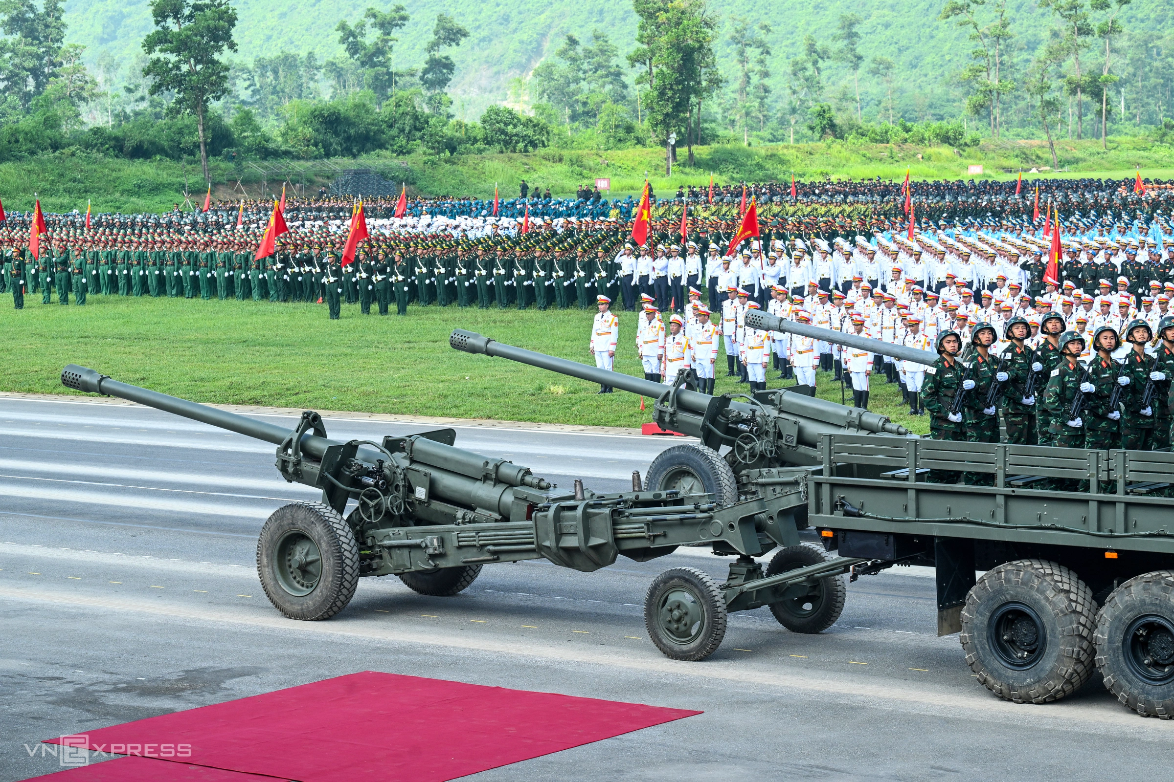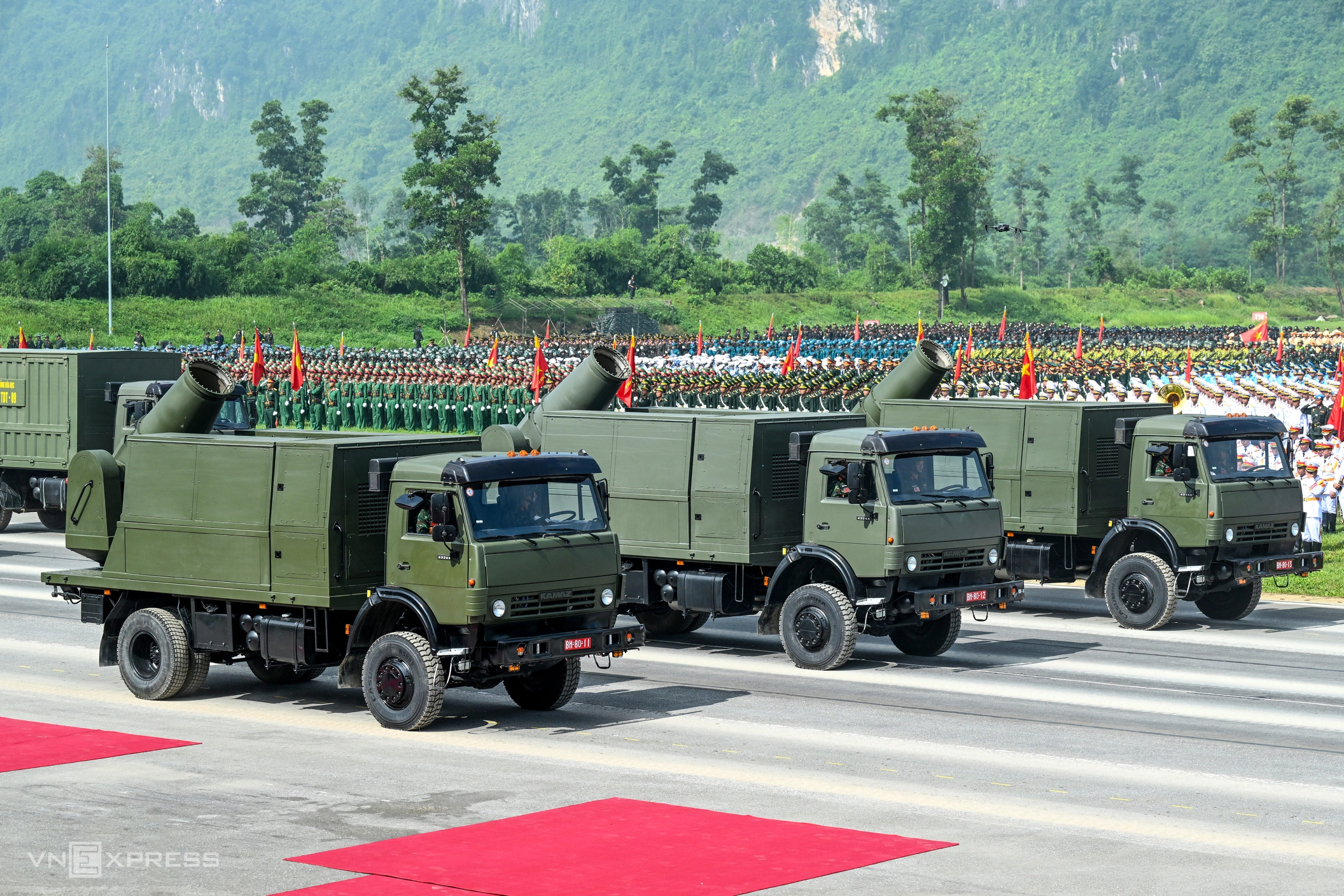 Khối xe pháo quân sự của Binh chủng Pháo binh với các loại vũ khí có tầm bắn xa, uy lực lớn.