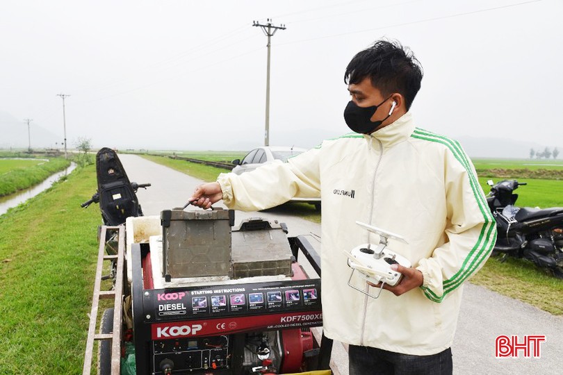 Vừa rồi, nghe tin ở quê và các xã lân cận đã chuyển đổi ruộng đất thành ô thửa lớn nên tôi đã mạnh dạn mua một bộ thiết bị (máy bay, pin, bảng điều khiển, máy phát điện dự phòng...) trị giá 200 triệu đồng để phục vụ bà con. Ban đầu, tôi phục vụ ruộng của gia đình, người thân, các hộ già cả trong thôn; khi thấy hiệu quả tốt thì nhiều người đã đặt lịch thuê liên tục và máy đã phát huy tốt hiệu quả”.