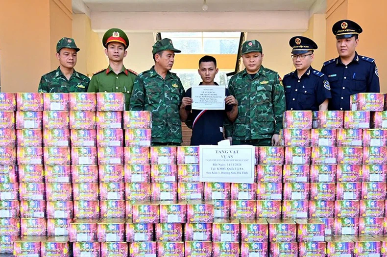 Lực lượng chức năng tỉnh Hà Tĩnh bắt giữ pháo lậu. (Ảnh: NỤ BÙI)