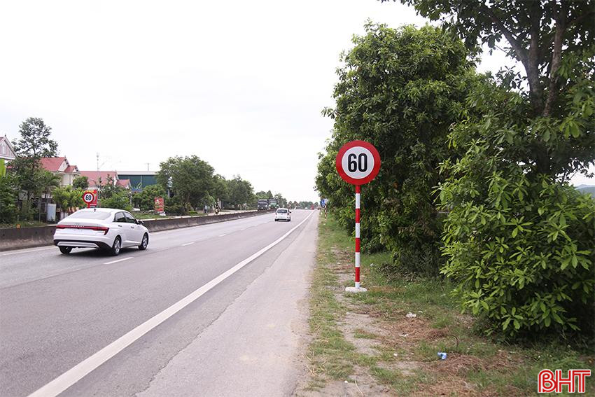Biển hạn chế tốc độ tối đa 60 km/h vừa được cắm bổ sung ở khu vực ngã tư giao Km 489+300 quốc lộ 1 với tuyến đường trục xã và trục thôn tại xã Vượng Lộc, huyện Can Lộc.