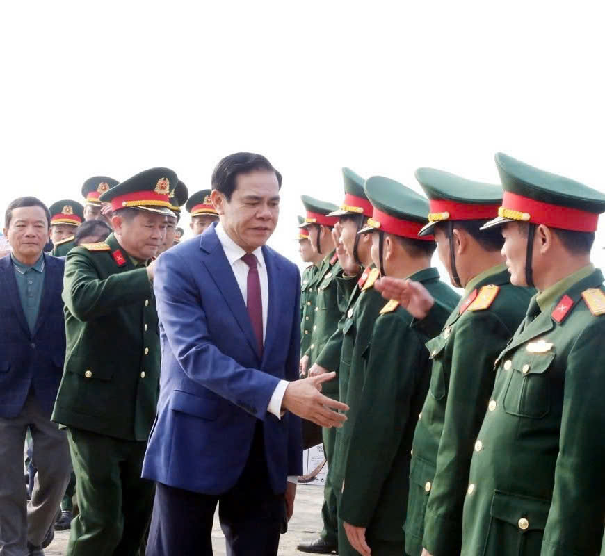 Tham gia đoàn có Đại tá Nguyễn Xuân Thắng – Ủy viên Ban Thường vụ Tỉnh ủy, Chỉ huy trưởng Bộ Chỉ huy Quân sự tỉnh; Đại tá Nguyễn Xuân Thao – Ủy viên Ban Thường vụ Tỉnh ủy, Giám đốc Công an tỉnh; Phó Chủ tịch HĐND tỉnh Trần Văn Kỳ cùng lãnh đạo các sở, ngành và địa phương.
