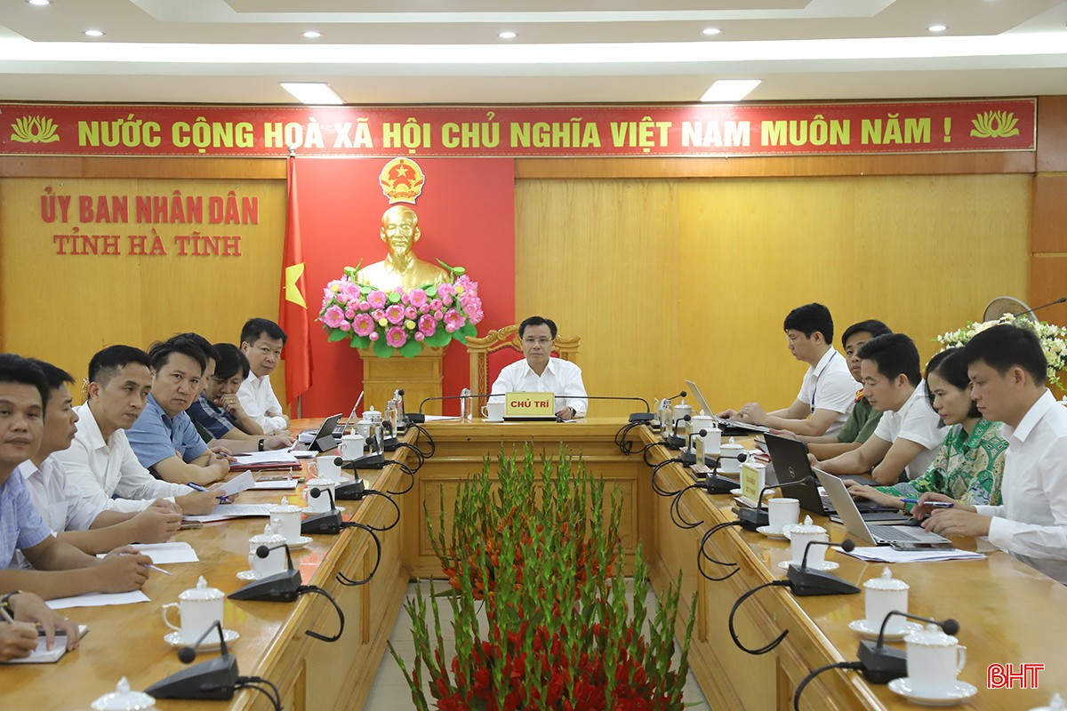 Giám đốc Sở Nông nghiệp và Môi trường Lê Ngọc Huấn điều hành điểm cầu Hà Tĩnh. Ảnh BHT