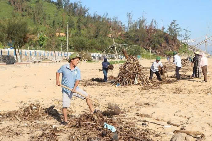 Trước đó, ngay sau bão số 5, lượng lớn rác thải bị sóng đánh dạt vào bờ, gây ô nhiễm nghiêm trọng và ảnh hưởng trực tiếp đến cảnh quan du lịch. Trong suốt một tuần qua, chính quyền và các đơn vị liên quan đã huy động hàng trăm ngày công để thu gom, xử lý hơn 20 tấn rác. Tuy nhiên, do khối lượng rác tồn đọng quá lớn, công tác vệ sinh môi trường tiếp tục được triển khai trong những ngày sau đó.