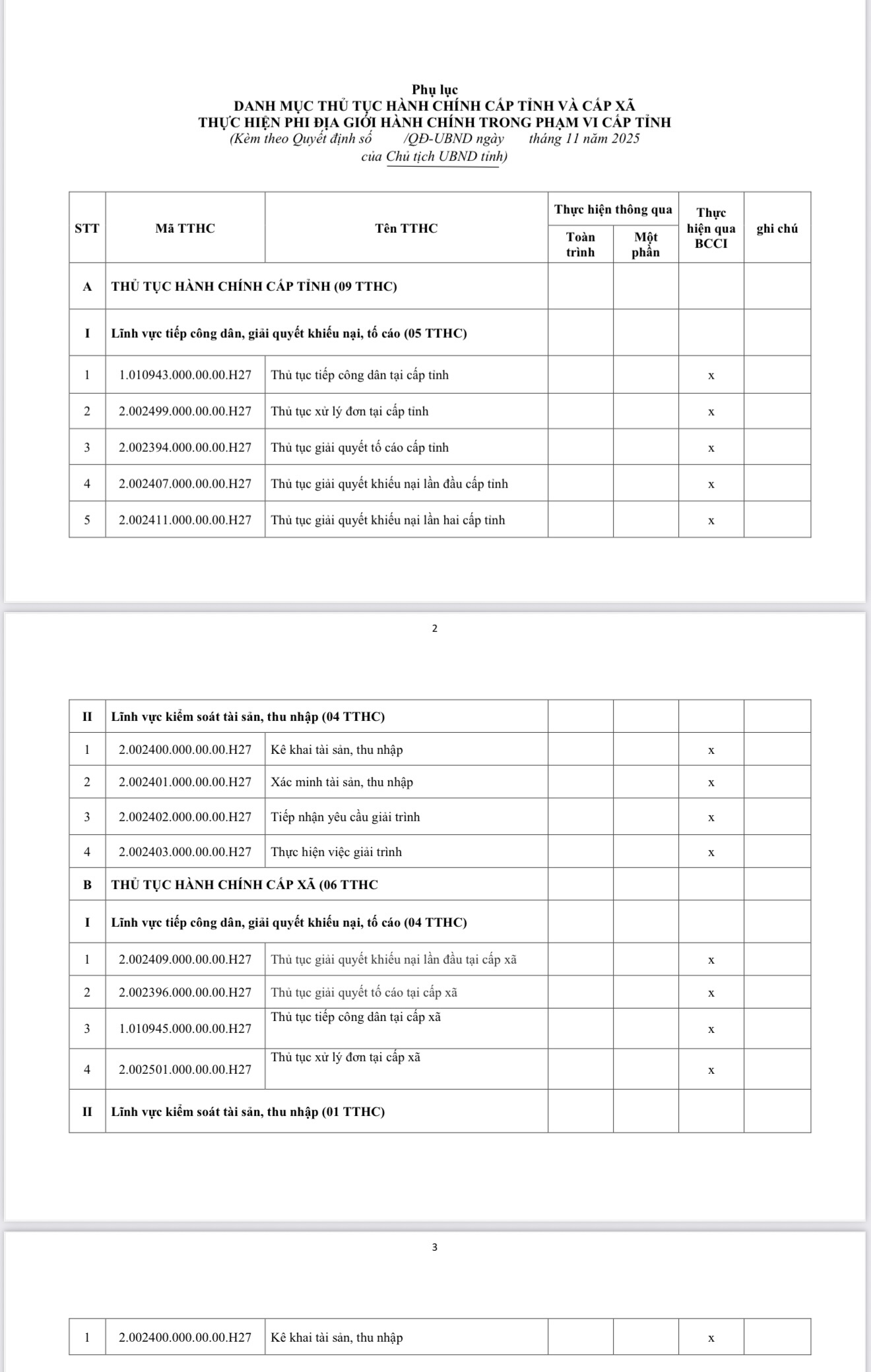 Quyết định Ban hành Danh mục thủ tục hành chính thuộc thẩm quyền quản lý của Thanh tra tỉnh thực hiện không phụ thuộc vào địa giới hành chính trong phạm vi cấp tỉnh