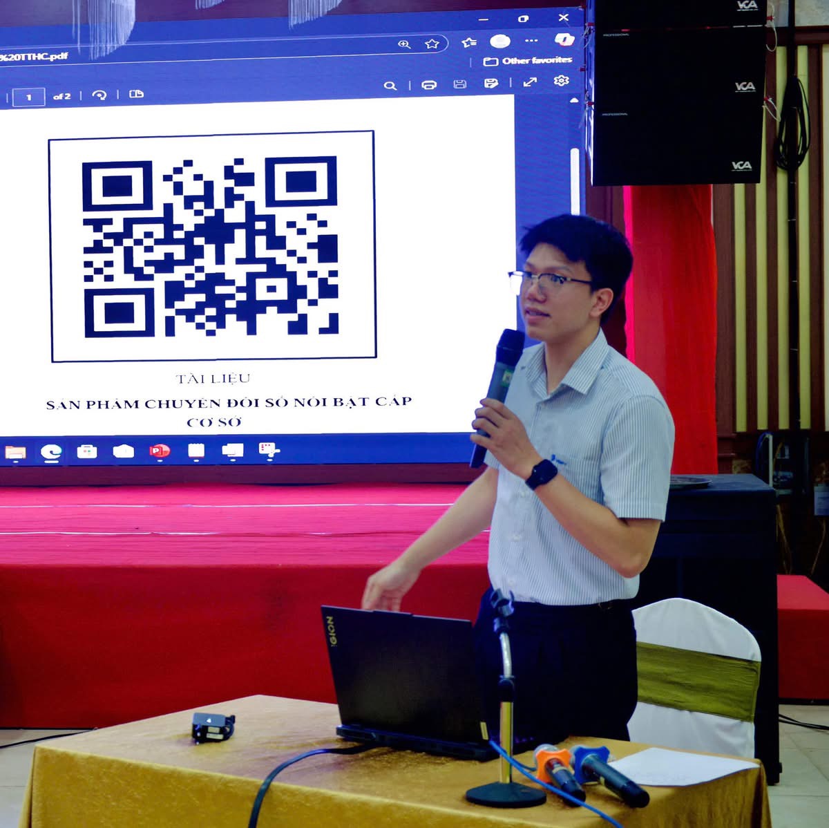 Ông Đặng Văn Đức - TP Phòng Chuyển đổi số, Sở KH&CN giới thiệu một số văn bản quản lý nhà nước về mô hình chính quyền 2 cấp, Cổng tra cứu pháp luật Quốc gia.